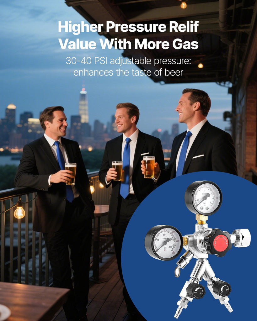 Stable Pressure Control: This CO2 tank regulator features a pressure relief valve that automatically vents between 50 and 65 PSI, preventing unwanted pressure release at lower levels. This thoughtful design helps maintain consistent beer quality and output
