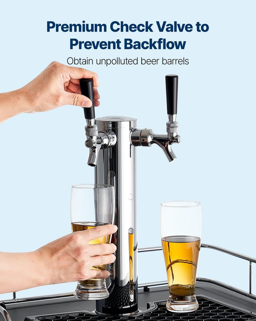Backflow Prevention: Equipped with 2 check valves, our CO2 regulator for kegerators avoids beer backflow caused by pressure issues. This design ensures a smoother, more stable brewing process while keeping your kegs cleaner